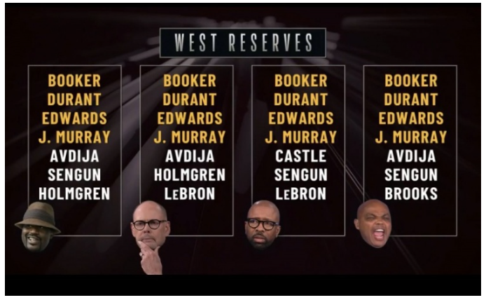 TNT天团选全明星西部替补 奥胖巴克利弃老詹 布克KD等4人全票
