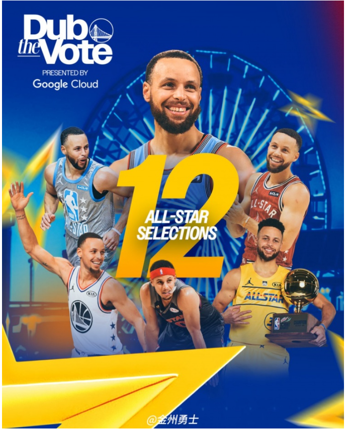 库里第12次入选全明星刷新勇士队史纪录 官方发文祝贺