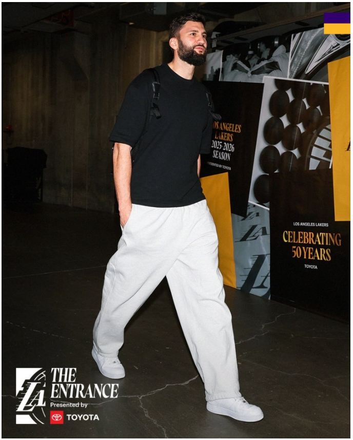 湖人众将入场穿搭吸睛 克莱伯艾顿反向配色海斯皮衣格子裤成焦点