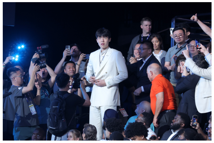 混音社媒晒队内大合照 杨瀚森站边缘笑容灿烂胸肌抢眼