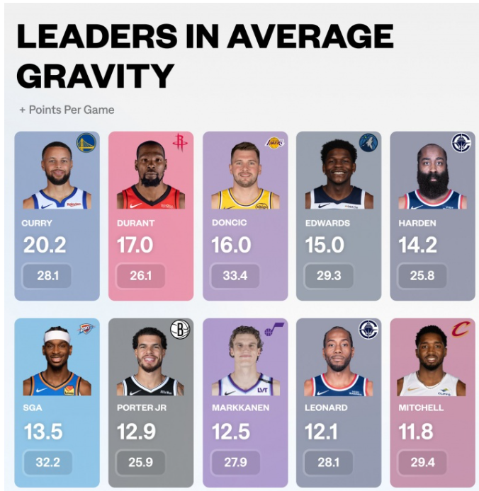 官网新数据引力值榜出炉 库里杜兰特东契奇前三哈登第五