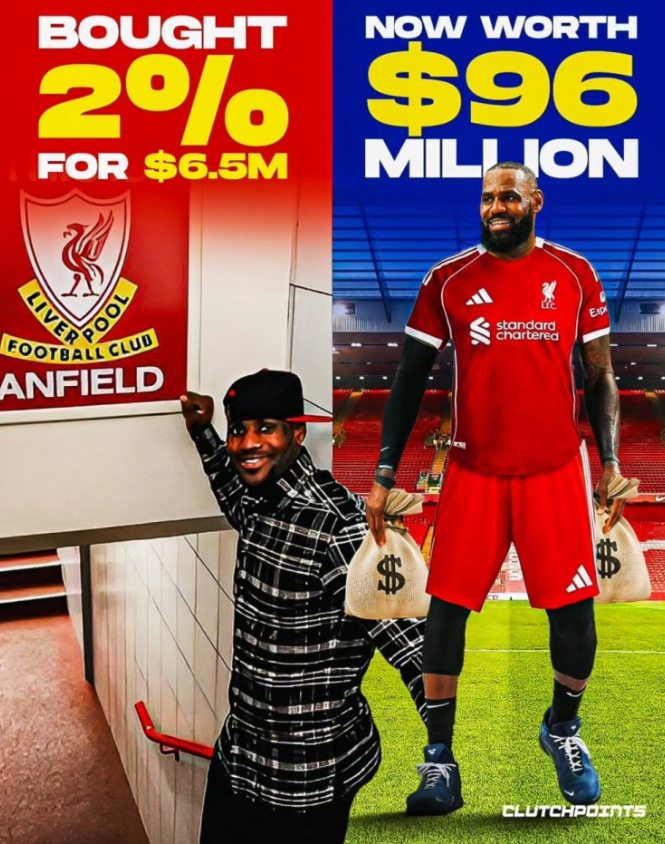 眼光毒辣!詹姆斯2011年650万美元投资利物浦,现估值达9600万,成其又一经典商业案例
