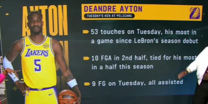 艾顿触球53次领跑全联盟,该数据为自詹姆斯赛季首秀后最高