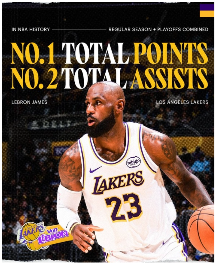 湖人官宣海报致敬詹姆斯 历史得分王+助攻榜第二无人能及